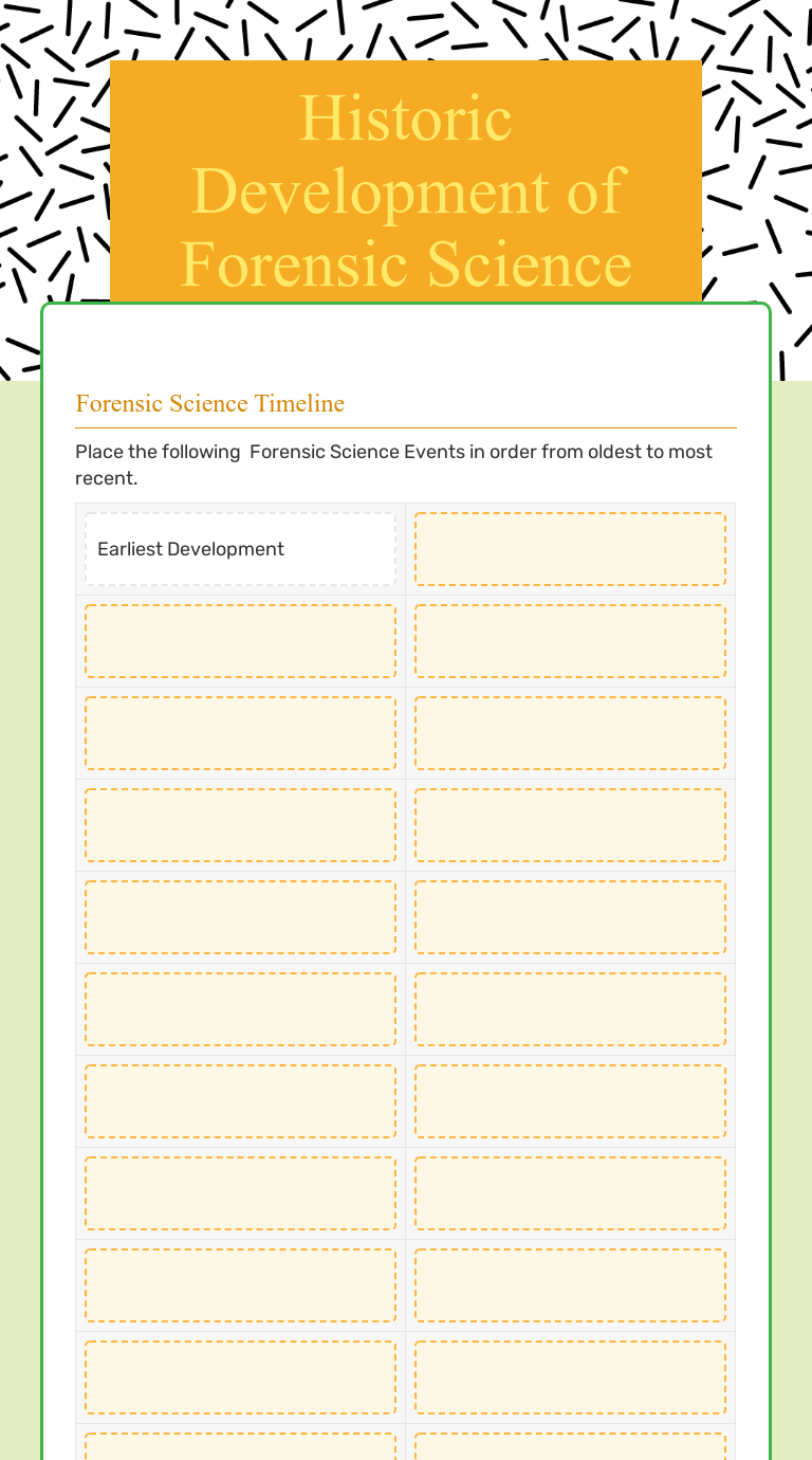 Forensic Science Timeline Worksheet / Forensic Science Timeline By Carlee Baker :. What courses are required for forensic science?. Forensic scientists apply scientific principles from fie. Forensics is the study and use of science and technology to resolve criminal, civic and regulatory matters. How much do forensic science pathologists make?. Their work can identify possible suspects, determine c.